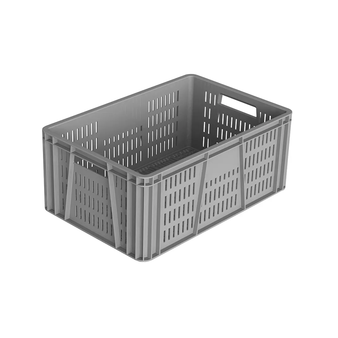 Caja plástica fabricada en polietileno de alta densidad. Es un producto reutilizable, retornable y reciclable 100%. Caja apilable con excelente estabilidad al arrume. Aplicable en una gran variedad de industrias ofreciendo eficiencias y ahorros en líneas de producción, almacenaje, transporte y distribución.