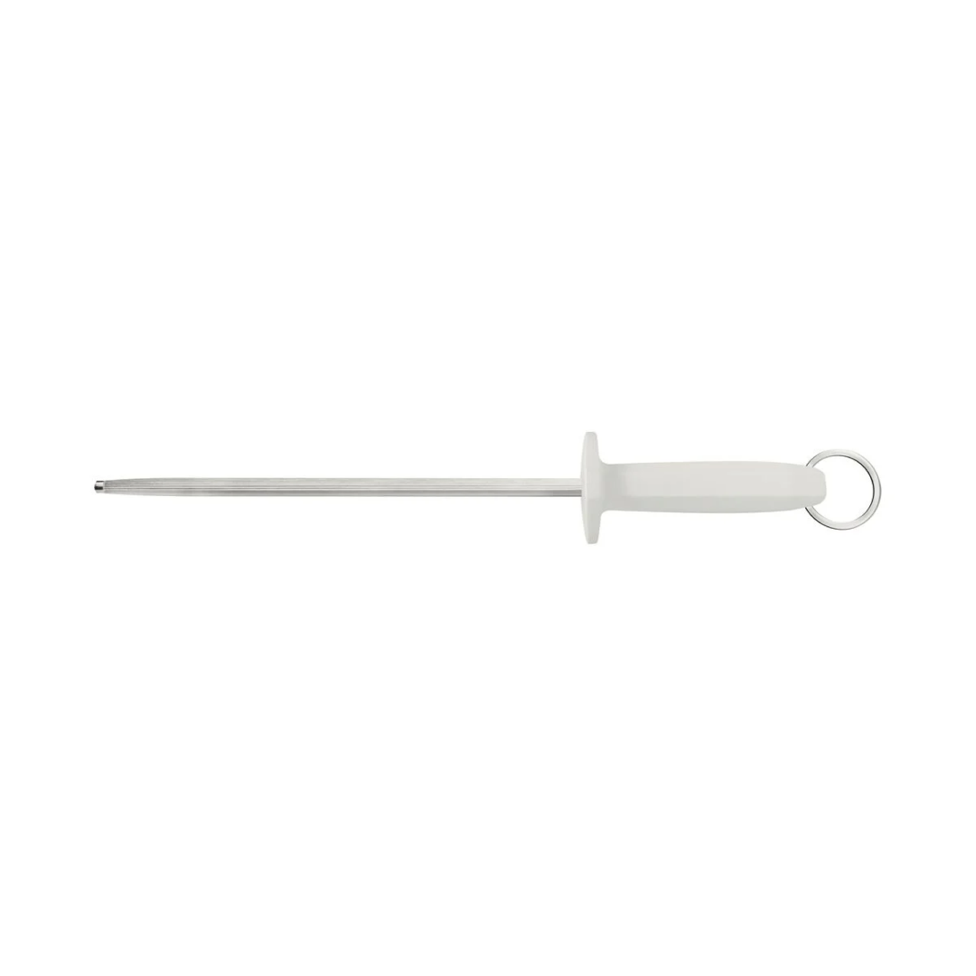 A la hora de afilar sus cuchillos use el Afilador Estriado Tramontina Profesional con Eje de Acero Carbono y Mango en Polipropileno Blanco