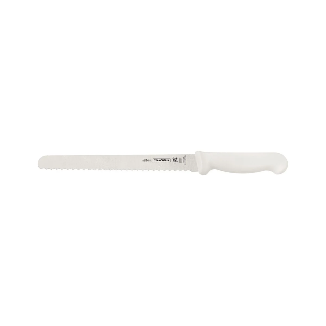 Con el cuchillo para pan Tramontina Profesional con lámina en acero inoxidable y mango de polipropileno blanco de 10 pulgadas obtendrá calidad al momento de cortar en rodajas sus alimentos, porque la pieza presenta una lámina larga y flexible en acero inoxidable con tratamiento térmico.