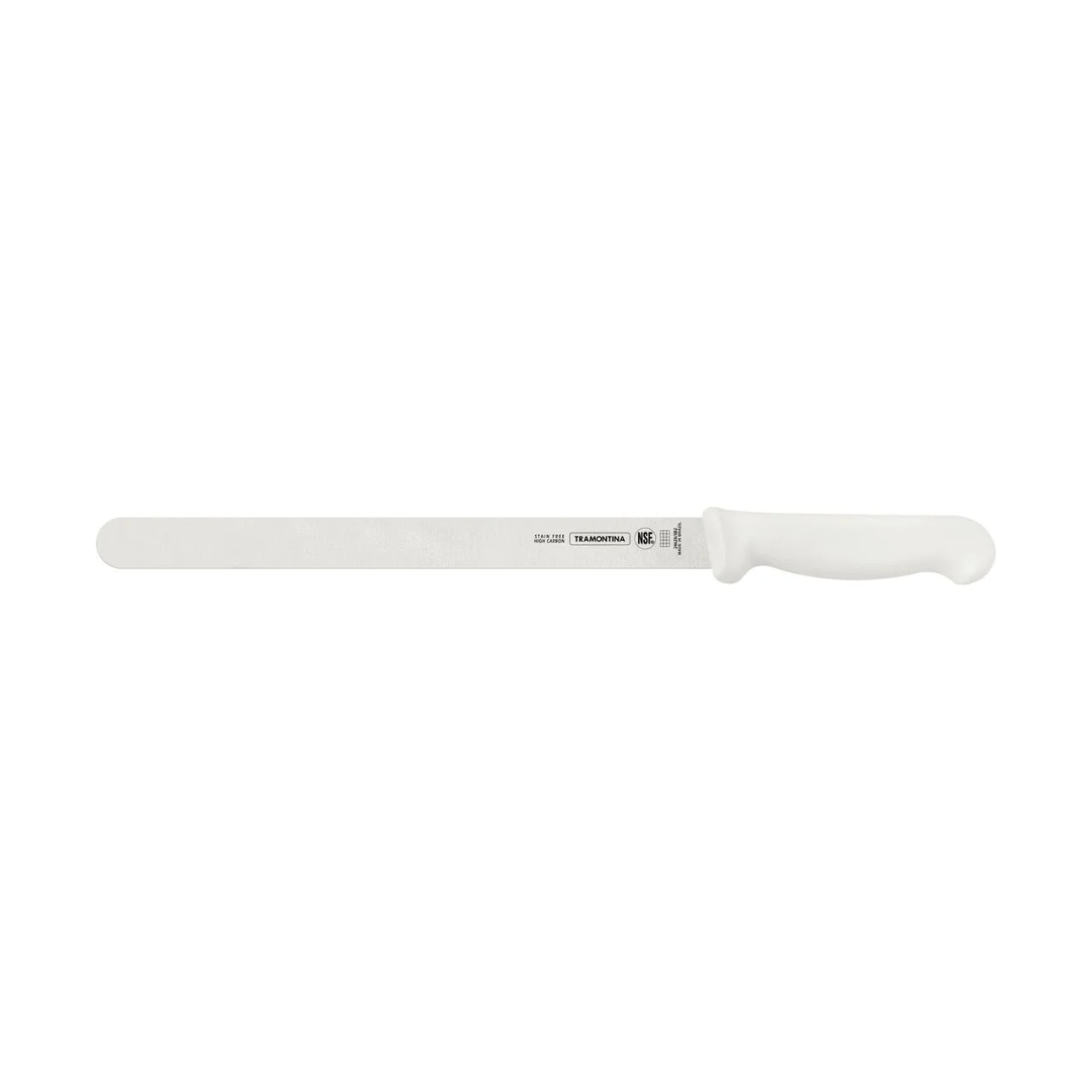 El acabado perfecto que desea es posible con el cuchillo para fiambres Tramontina Profesional con lámina en acero inoxidable y mango de polipropileno blanco de 12 pulgadas. La pieza posee una lámina en acero inoxidable con tratamiento térmico, además de un mango de polipropileno que ofrece mayor estabilidad y seguridad al momento del uso.