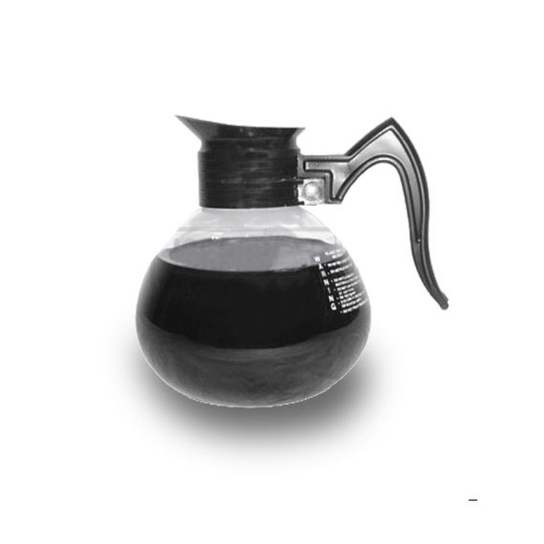 Recipiente en vidrio refractario. Manija ergonómica. Vertedero en plástico. Para uso en calentadores de jarras y máquinas de café por goteo.