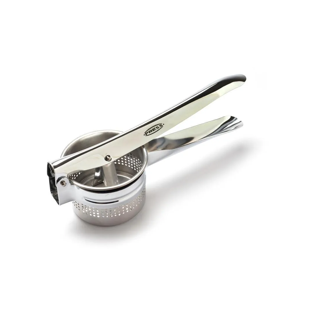 Fabricado en metal cromado de gran resistencia. Con remaches reforzados para mayor durabilidad. Diseñado para ejercer presión con ambas manos simultáneamente. Es perfecto para triturar papas cocidas para hacer puré. También es ideal para exprimir la pulpa de cualquier verdura cocida, y de frutas como : manzanas y peras. Fácil de limpiar y almacenar.