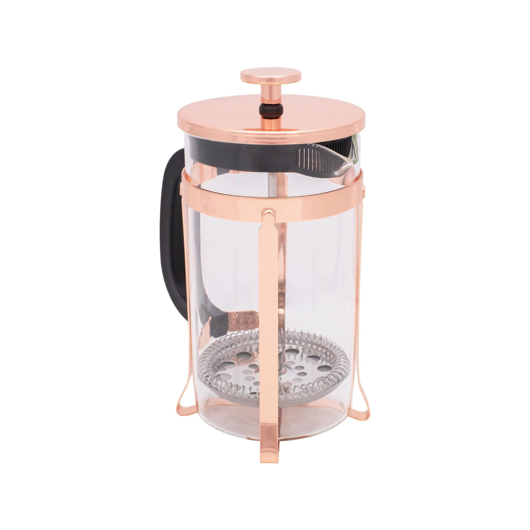Descubra nuestra elegante prensa francesa en color oro rosa, diseñada con un filtro incorporado que garantiza un café más concentrado y lleno de sabor. Disponible en dos tamaños prácticos de 350 ml y 600 ml, es perfecto para disfrutar de tu café favorito en casa o llevarlo a donde quieras
