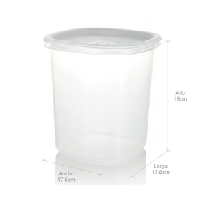 Esta línea de almacenamiento está diseñada para guardar y conservar frescos los alimentos en la nevera y la despensa. Productos livianos, apilables, modernos, con cuerpos traslúcidos. Recipiente diseñado para ser apilado y arrumado optimizando espacio. Versátil, modular, resistente a sales, ácidos, detergentes y aceites. Útil para almacenar alimentos como granos, harinas, pastas y cereales. Apto paa contacto con alimentos Apto para microondas Apto para refrigeracion Libre de BPA material: polipropileno / polietileno