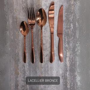 Nuestra cubertería Bronce brillante, el toque perfecto para iluminar tu mesa. Con un diseño elegante y confortable, cada pieza aporta un brillo único que hará resaltar tus comidas